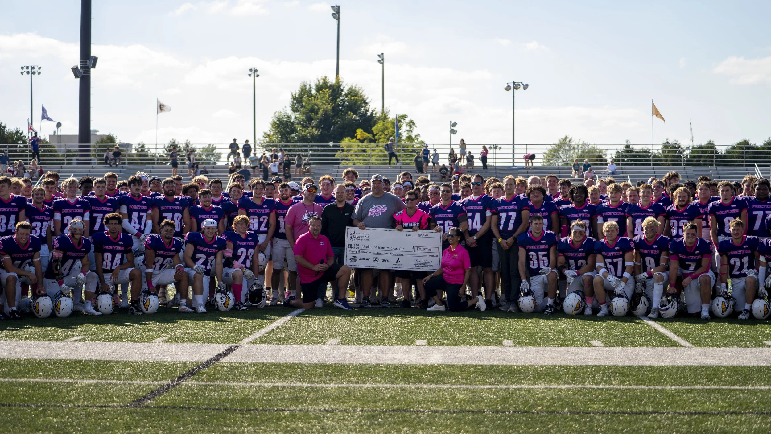 Every year at Goerke Field in Stevens Point, Wisconsin, Team Schierl Companies joins forces with BSN Sports and the University of Wisconsin-Stevens Point Pointers football team for a charity game to raise money for organizations supporting families touched by cancer. Participants can bid on one-of-a-kind game worn UWSP jerseys in the silent auction, purchase “Pink Game for Charity” apparel, and cheer on the Pointers. We've raised over $712,000.00 since we started in 2010, with all proceeds supporting local cancer related charities and UWSP student-run cancer fundraising efforts.